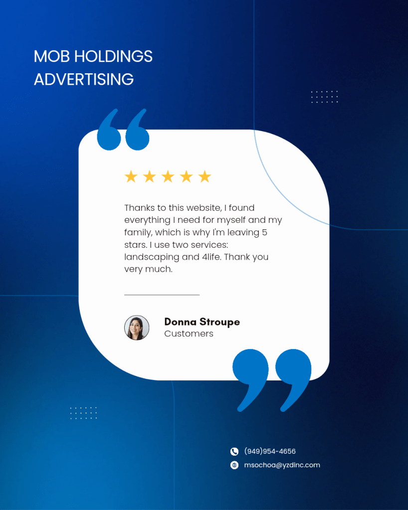 mob holdings advertising offers youmany quality services with professional staff browse our website and tell us what service you need it will be a pleasure to assist you
