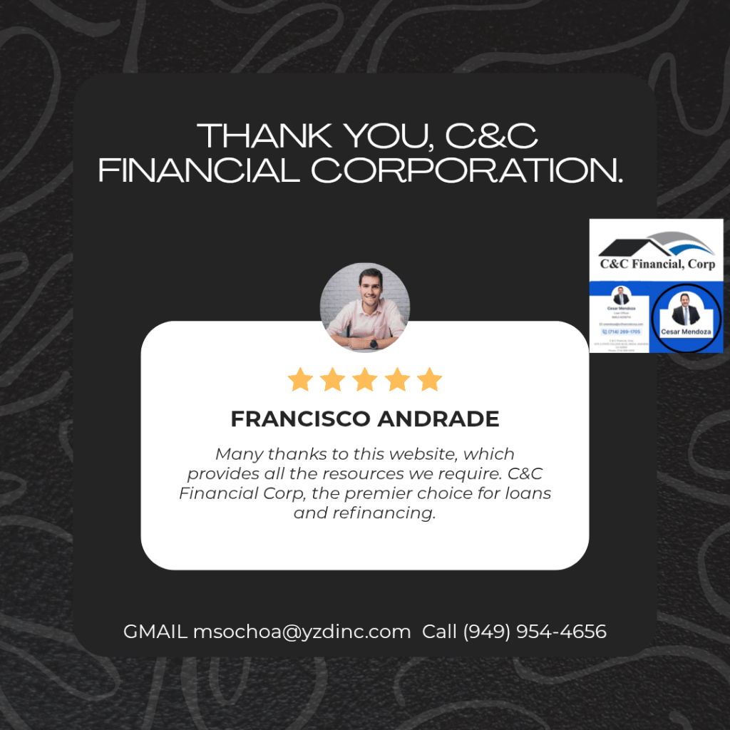 We are number 1 in the United States for loans and refinancing with the best financial advisor Cesar Mendoza . Call or text us or click the button below to schedule your appointment . let your appointment Let your money work for you not the other way around Well advise you it will be a pleasure to assist you.